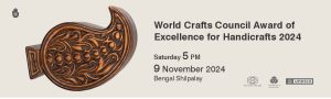 You are cordially invited to the award-giving ceremony of World Crafts Council Award of Excellence for Handicrafts 2024. Dr. Susan Vize, Head of Office and UNESCO Representative to Bangladesh, will give away the certificates. Dr. Niaz Zaman, writer and crafts exponent, will be present on the occasion as the special guest. Saturday 5 PM 9 […]