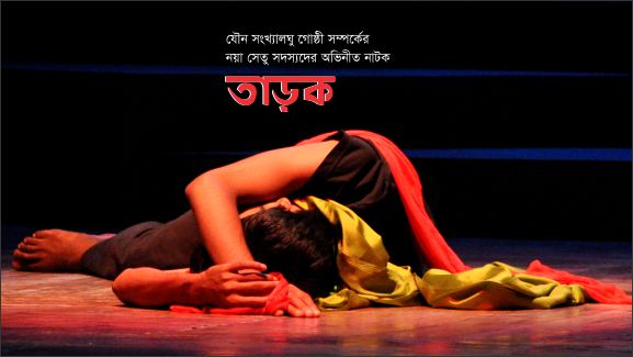 তাড়ক (Tarok) June 5, 2012 by Alif Hamid যৌন সংখ্যালঘু গোষ্ঠী সম্পর্কের নয়া সেতু সদস্যদের অভিনীত নাটক। রচনা মো. রফিকুল ইসলাম টুটুল নির্দেশনা আনিসুল হক বরুন সময় : সন্ধ্যা ৭টা, বুধবার, ৫ জুন ২০১২ এক্সপেরিমেন্টাল থিয়েটার হল বাংলাদেশ শিল্পকলা একাডেমী Share: