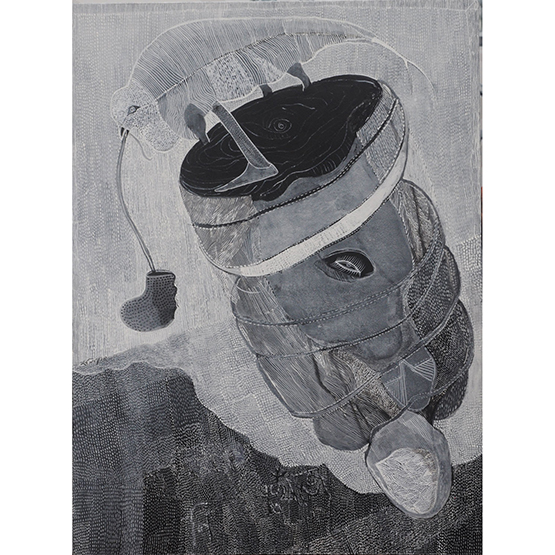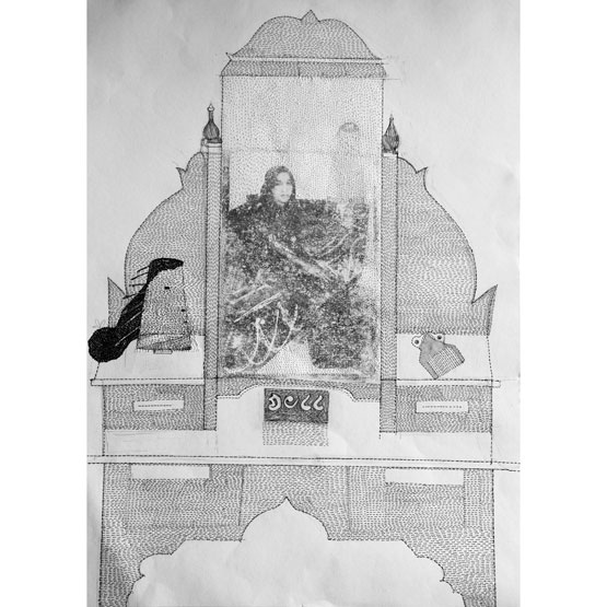 Dilara Begum Jolly (b. 1960, Chittagong, Bangladesh) touches upon themes of gender, trauma and the female body. Initially trained as a painter, she has expanded her practice to include various media such as performance, video and sound. Jolly has developed a signature practice of needling on paper and, more recently, photographs – a painstaking process during which she draws motifs on paper, or highlights areas on photographs, through needle prickling.