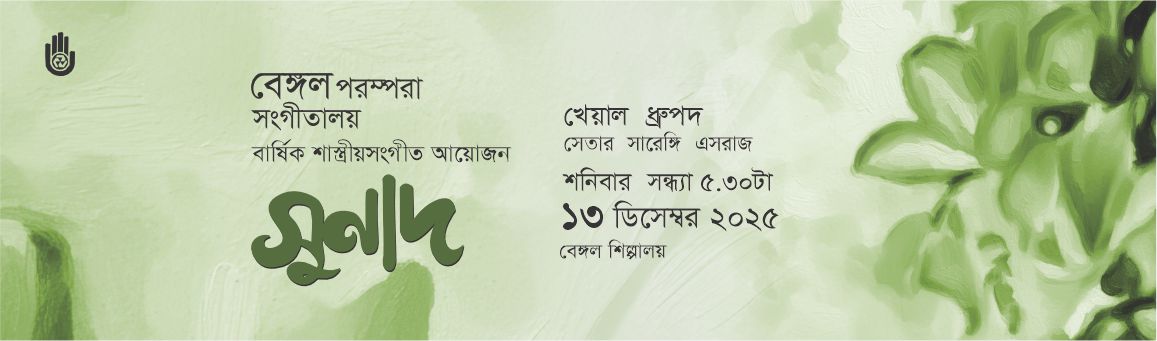 Bengal Foundation News and events Thumri – an evening of light classical music ‘সেই রাতের কথা বলতে এসেছি’র ২৫ বছর পূর্তি Bangladesh Traditional Handloom Exhibition & Fair 2026 শীত বৈঠক Two talks by Abul Monsur The Other Voice অন্যস্বর প্রাণে আনো গান – সাংস্কৃতিক উৎসব contemporary etchings কাজী নজরুল ইসলামের রাগপ্রধান ও টপ্পা গান নিয়ে কর্মশাল বার্ষিক শাস্ত্রীয়সংগীত আয়োজন – সুনাদ ‘আনিস চৌধুরী: হয়ে ওঠার লেখাজোখা’ বইয়ের মোড়ক উন্মোচন ও আলোচনা হেমন্ত বৈঠক বইয়ের মোড়ক উন্মোচন ও আলোচনা